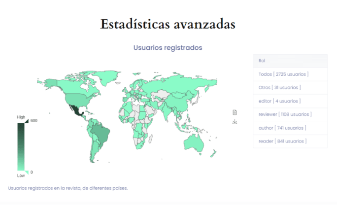Visum es una herramienta de estadísticas avanzadas que se enfoca en transparentar el proceso editorial de la revista, a la vez que brinda información de visibilidad de la publicación y de sus autores.
